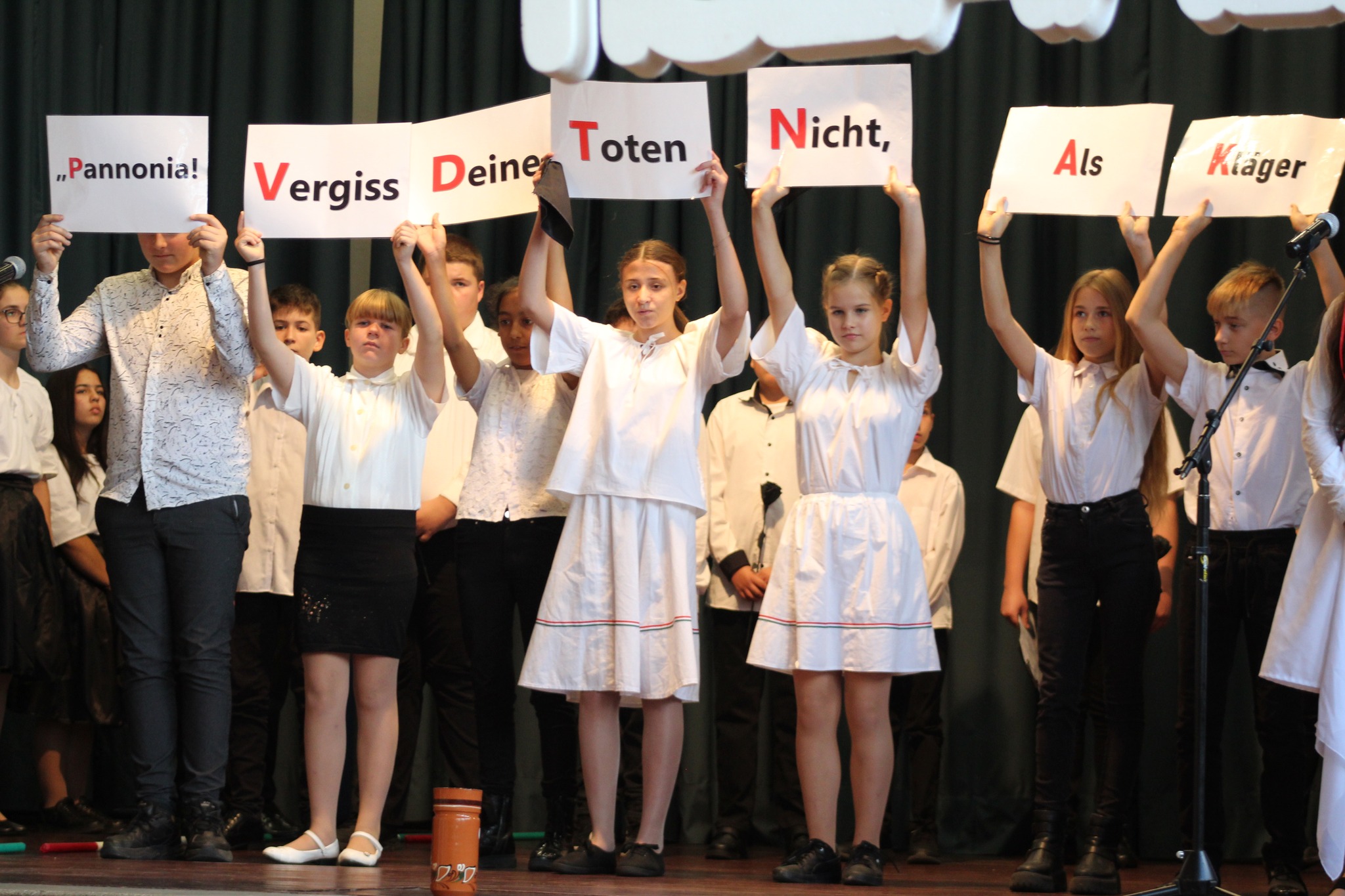 A színpadon felcsendült a „Álmodj álmot, álmodót” és a „Ha messze mész” című dal, valamint elhangzottak olyan költemények, amelyek a forradalom hősei iránti tiszteletet, az összetartozás és a szabadság eszméjét fejezték ki. A diákok előadását „székes” és „szalagos” táncos koreográfiák kísérték, amelyek még erőteljesebbé tették az emlékezés hangulatát.