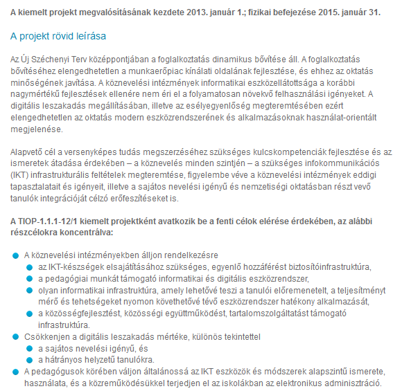 TIOP-1.1.1-12/1 "Intézményi informatikai infrastruktúra fejlesztése a közoktatásban" |