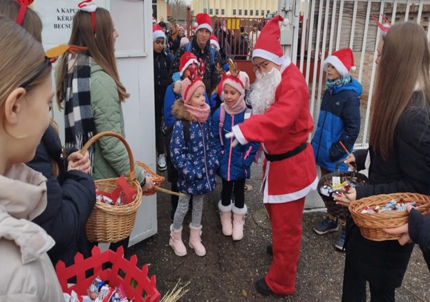 Iskolánkban 2025. december 5-én, pénteken reggel a Diákönkormányzat Mikulása és krampuszai fogadták az iskolakapuban a tanulókat.